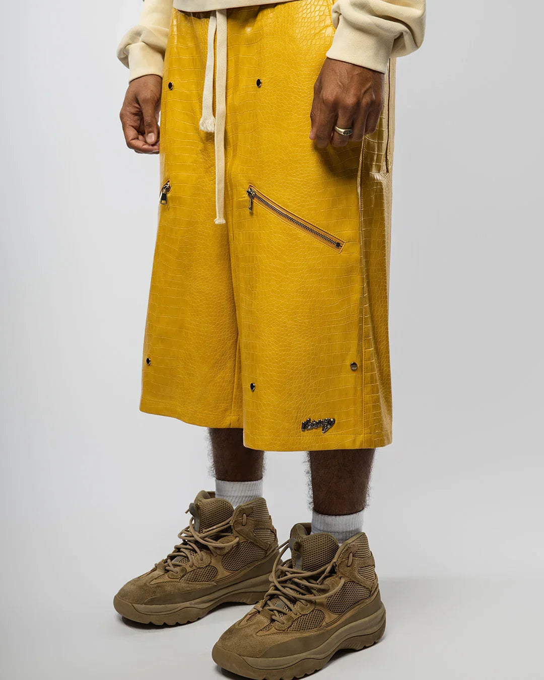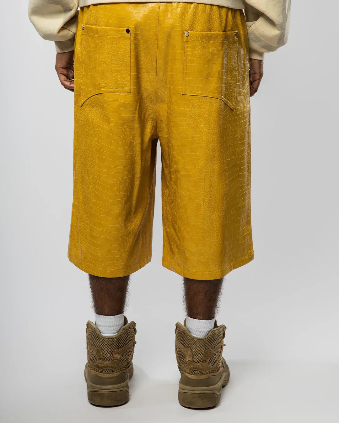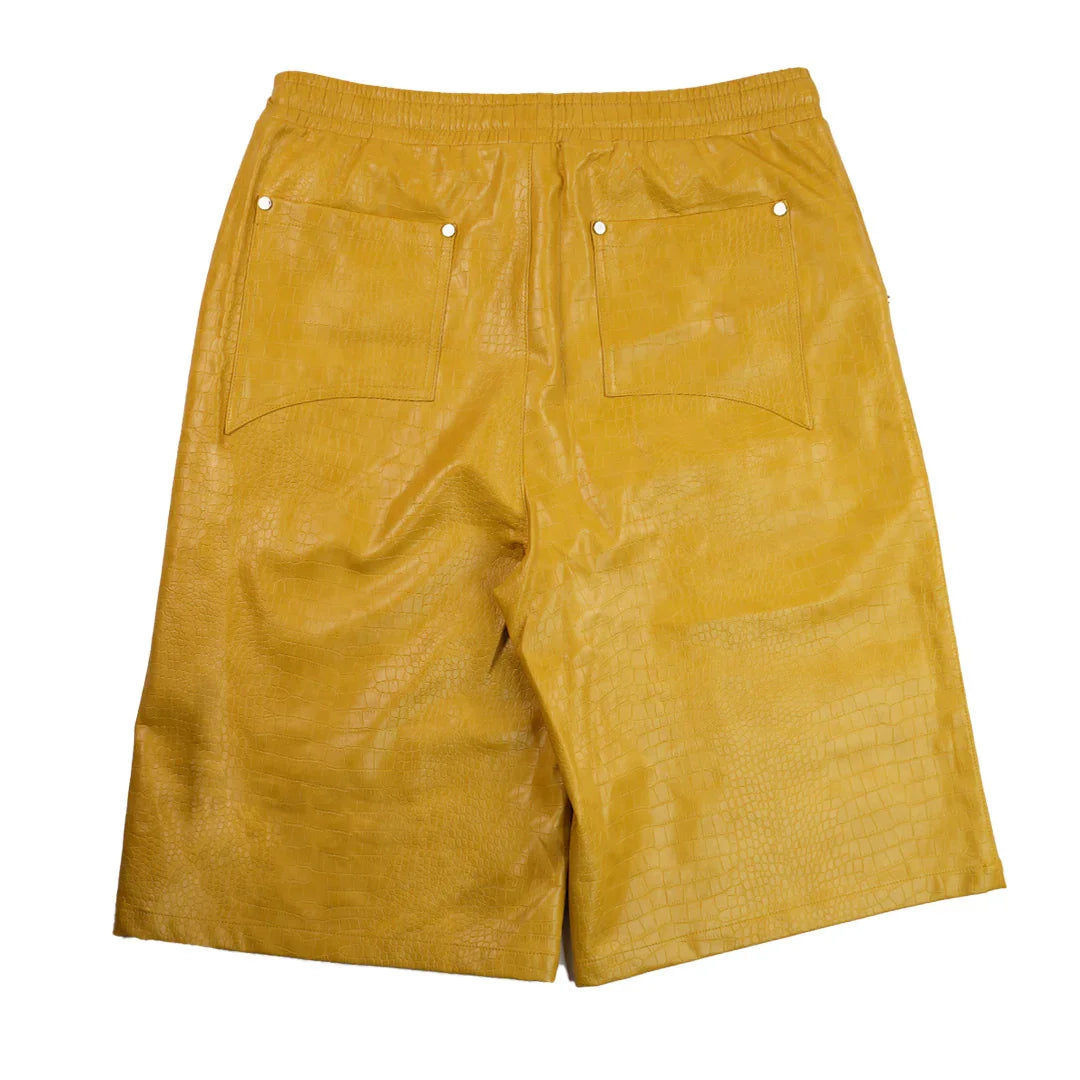 "NIGHT CRAWLER " BAGGY LEATHER SHORTS (YELLOW)