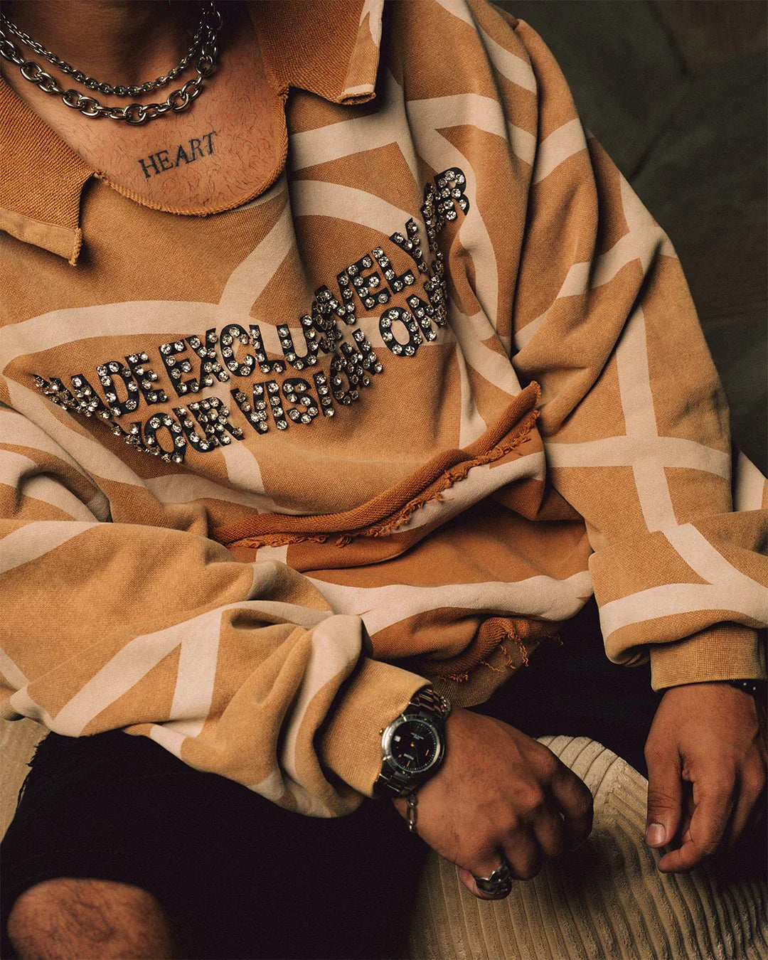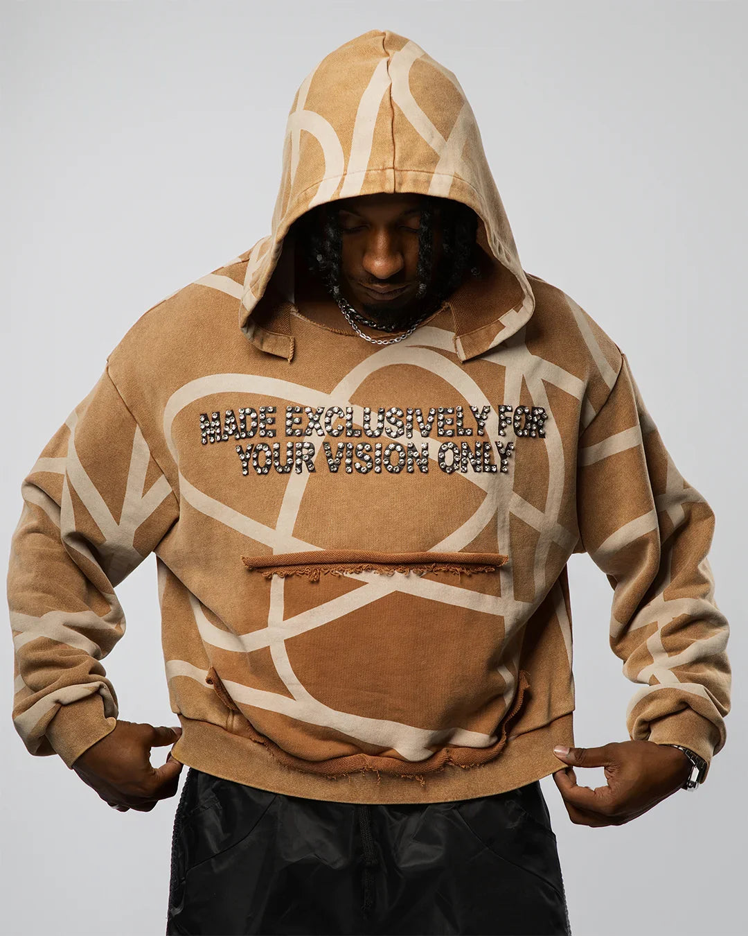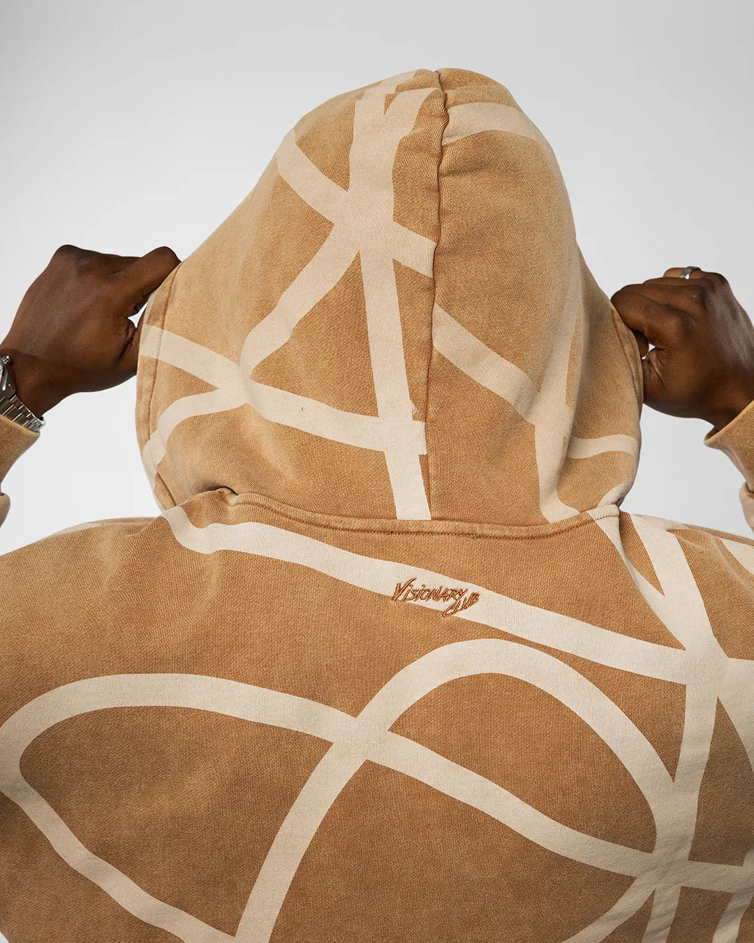 VISIONARY "TWISTED CHAOS" DISTRESSED HOODIE (BROWN)